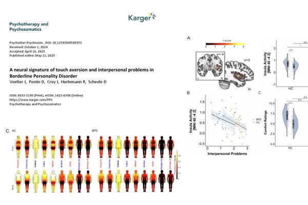In unserem Artikel im Journal Psychotherapy & Psychosomatics haben wir die neurale Verarbeitung sozialer Berührung und deren Bedeutung für interpersonelle Probleme bei Patient*innen mit Borderline Persönlichkeitsstörung vor und nach Therapie untersucht.