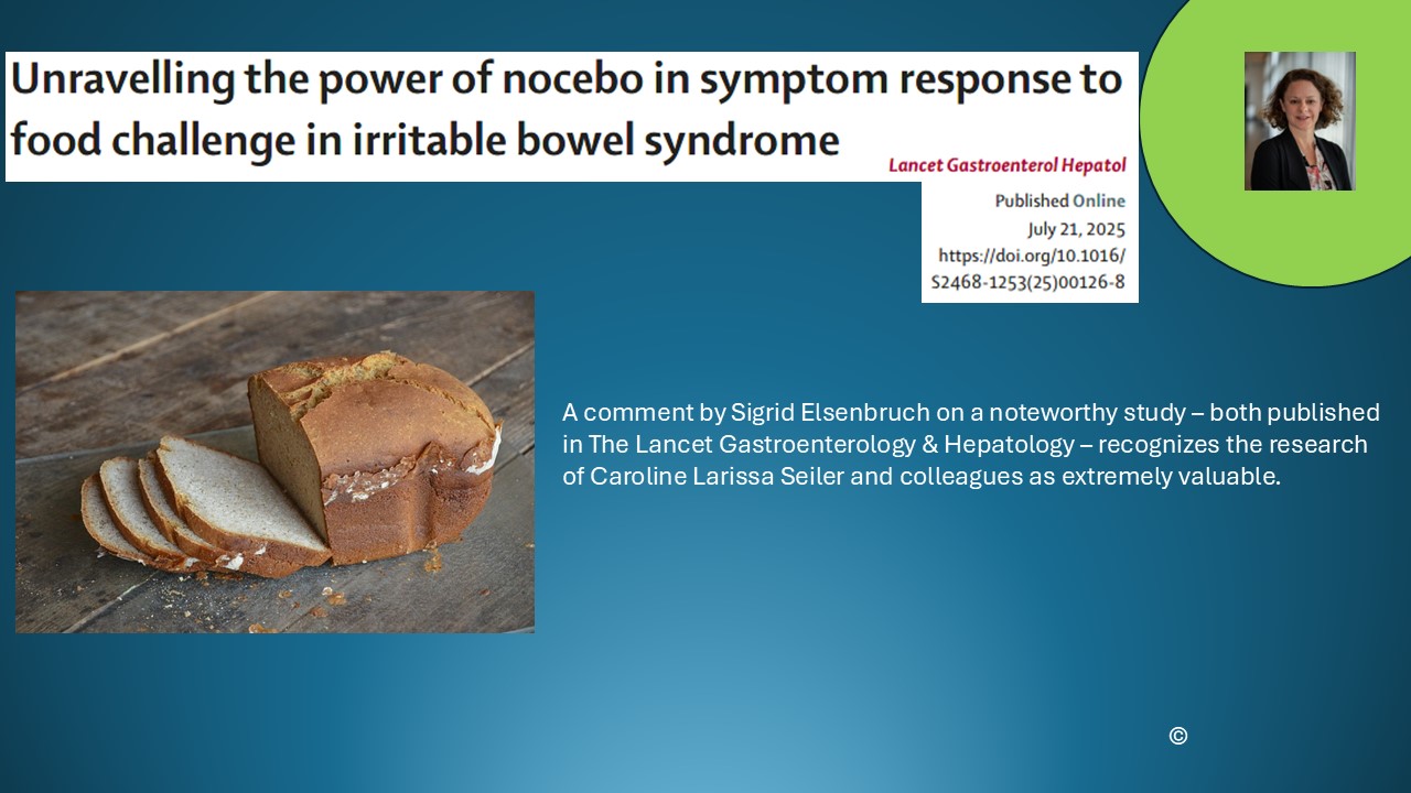 In der Placebo-Studie geht es darum, inwieweit vorherige Behandlungserfahrungen, Erwartungen und Überzeugungen Einfluss auf das Ernährungsverhalten und ernährungsbedingte Symptome bei Patient*innen mit Reizdarmsyndrom haben können. Zu lesen ist der Kommentar hier.